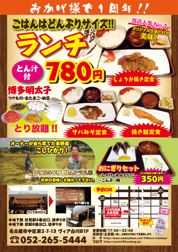 リニューアルオープンの裏面はランチのお知らせチラシです。