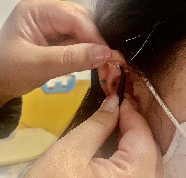 耳つぼジュエリーを貼ることが自分で出来る様になる講座です。