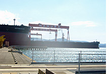 弊社は名村造船様の船舶塗装協力会社として船舶塗装も行っております。 船舶塗装は、貝殻の付着等の様々な要因から船体の汚染を防ぎます。