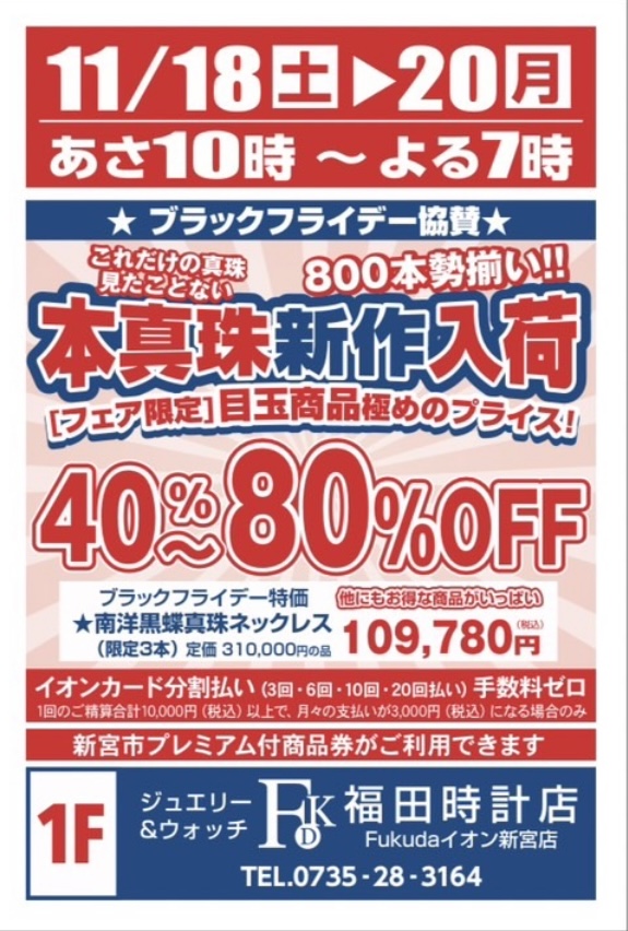 11月18日(土)~20日(月) 10:00~18:00 パールフェア開催