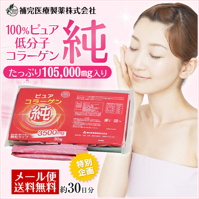 製薬会社が開発した100%ピュアコラーゲン。人気メイクアップアーティストが大絶賛!ピュアコラーゲン 純 1箱たっぷり約30日分(105,000mg)お試し用