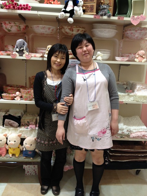 左:大谷さん 自分の子供と同じ年齢のスタッフと日々楽しく仕事させて貰ってます。 エミフルの名のごとく、笑みがいっぱいのア・ローズにしたいです。 右:田中さん 地味ですが、雑貨大好きです。 背が高めなので、高い所の品物を手に取って見たいという方はぜひ田中にご用命下さい!(笑)