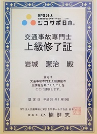 香川県高松市で唯一の交通事故上級インストラクターを取得し、 NPO法人ジコサポ(交通事故と労災をサポートする会日本) 香川支部の・・・[ 続きを見る ]