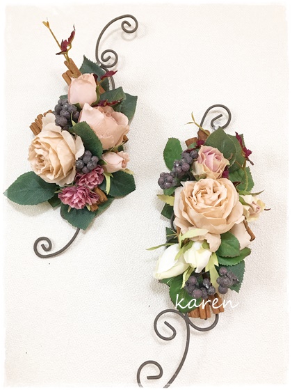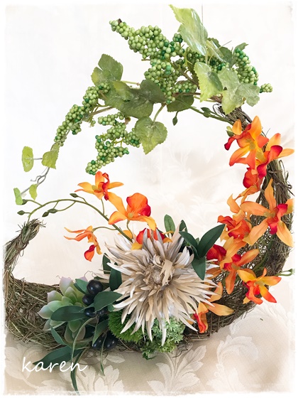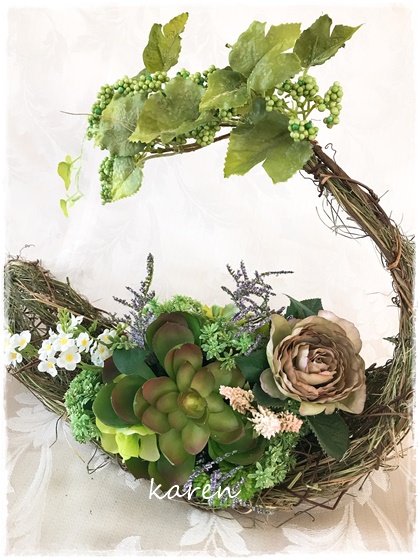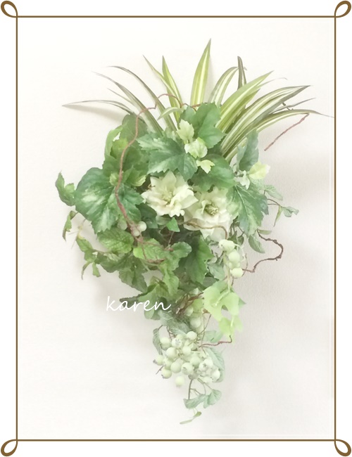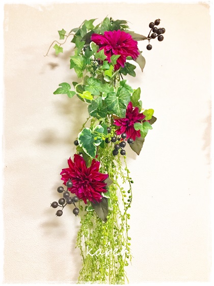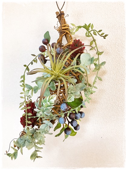 ブラウン基調にシックな壁掛けアレンジです。