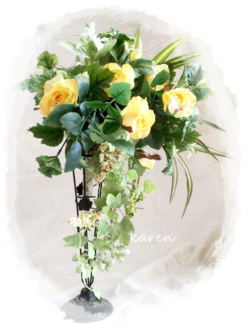 黄色い薔薇とアンティークスタンド