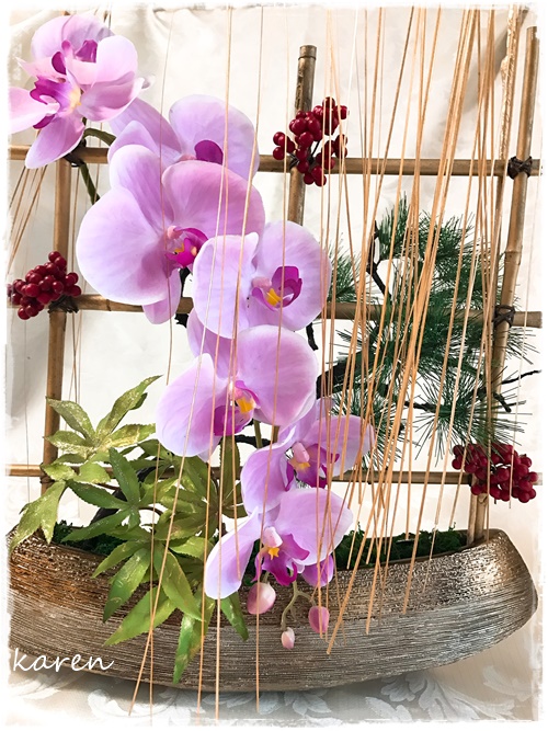 この花器を使って『和』のアレンジオーダーをいただきました。
