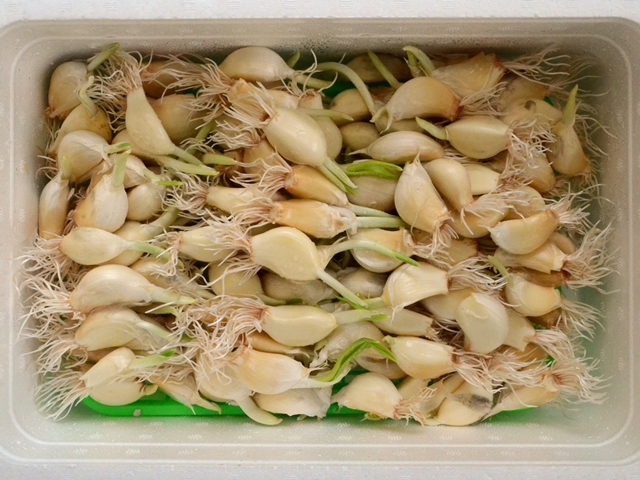 ミネラル水と乳酸菌で水耕栽培した「発根にんにく」を