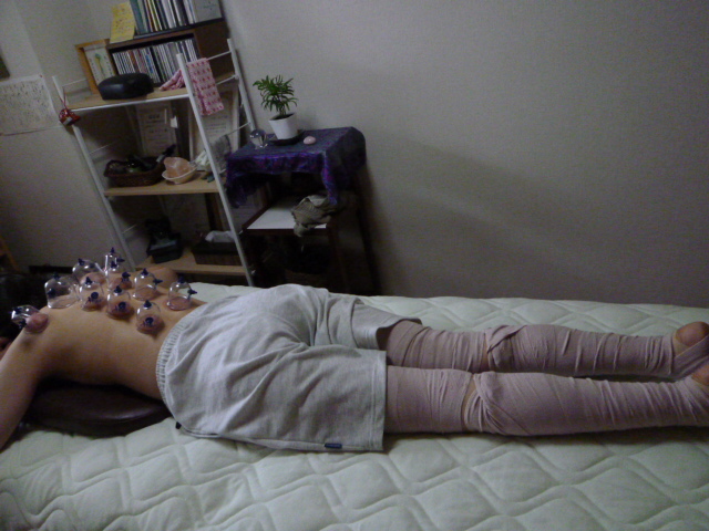 背面のツボに、吸い玉を置き、吸引します。