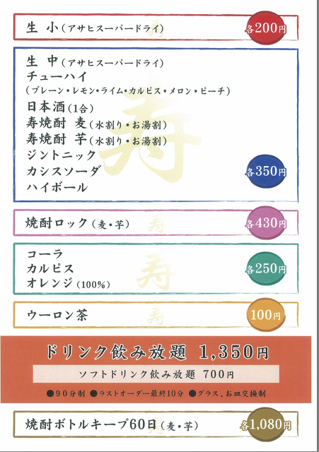 飲み放題メニュー