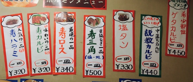 焼肉、ホルモンメニュー1!