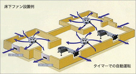 床下のたまった湿気を独自の設計で 床下の隅々までパワフルに空気を動かし、 腐朽菌・カビなどの発生を抑えます。