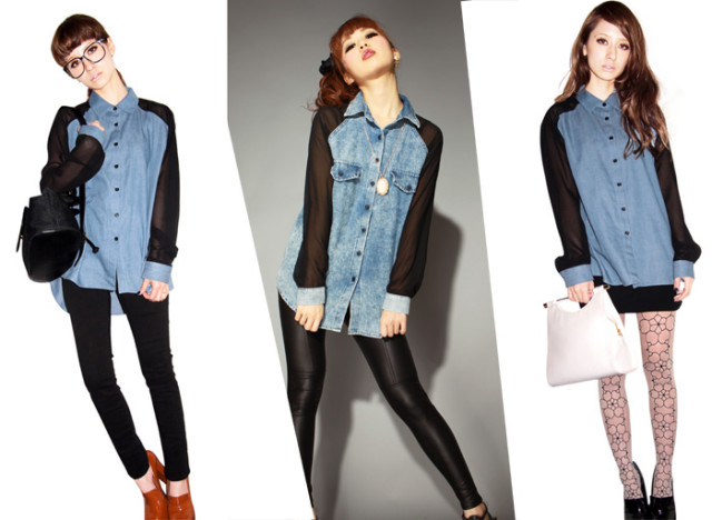 ショルダー部分が全てシフォン生地になったデザインダンガリーシャツ!!!