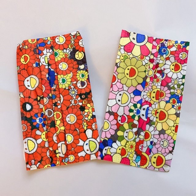 色彩が派手であるひまわり絵柄をプリントされた村上隆ブランド不織布マスクはとても素敵です。ハイブランド村上隆 マスクは通気性がある材質を選んで、このマスクを使って息が苦しい感じがないです。女性、子供愛用しています。