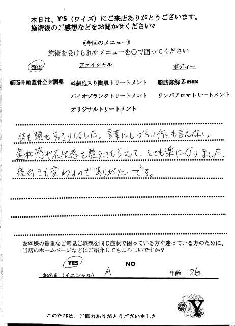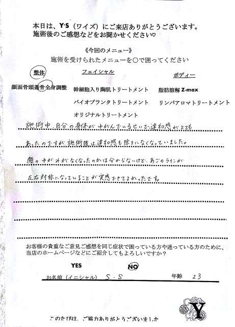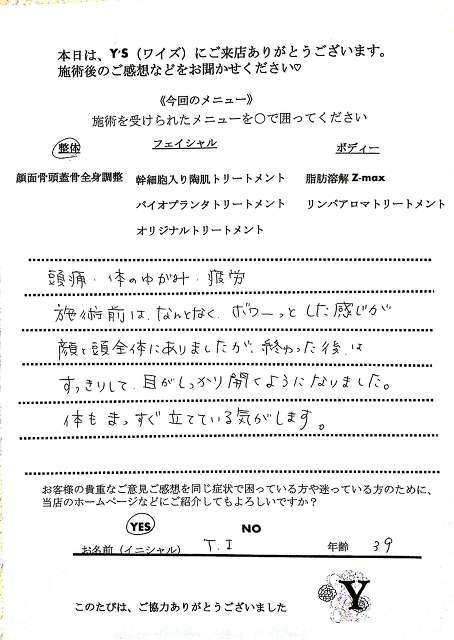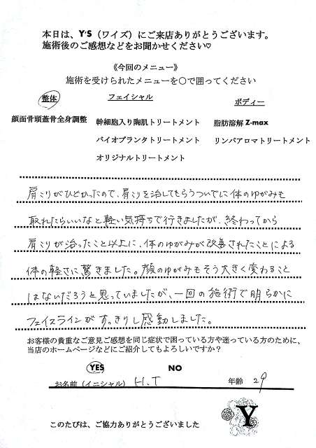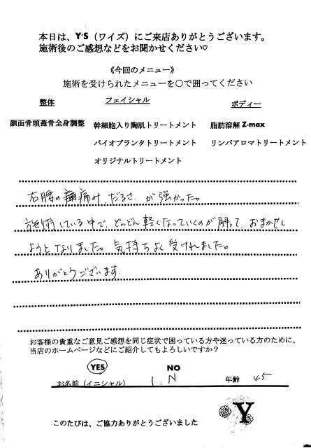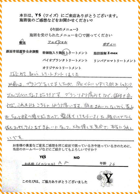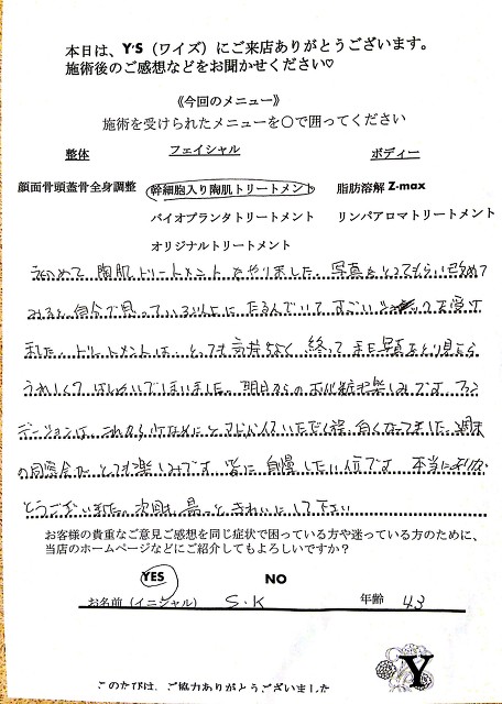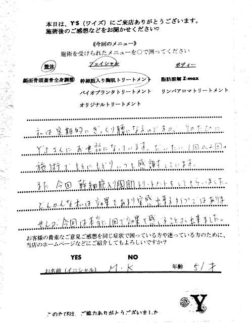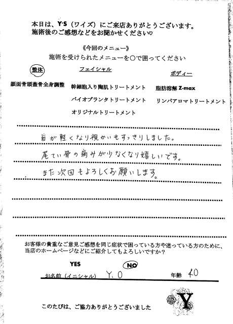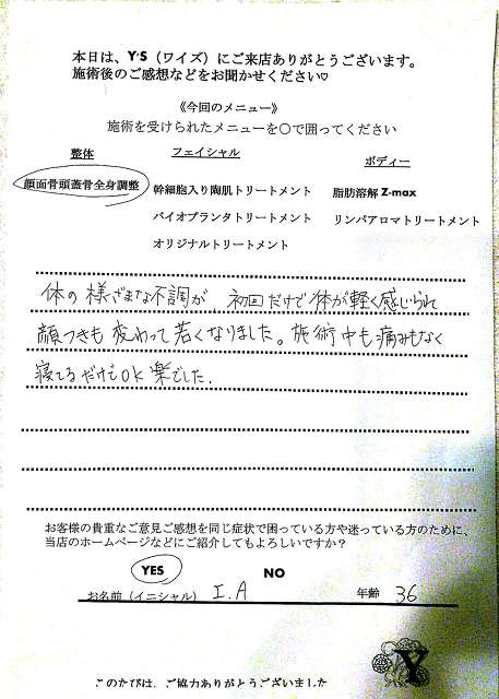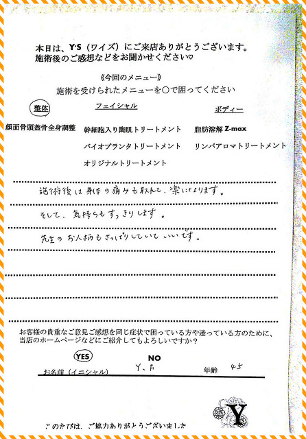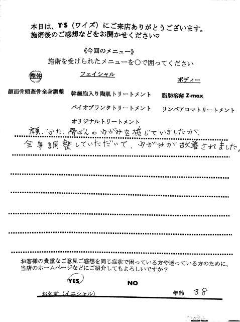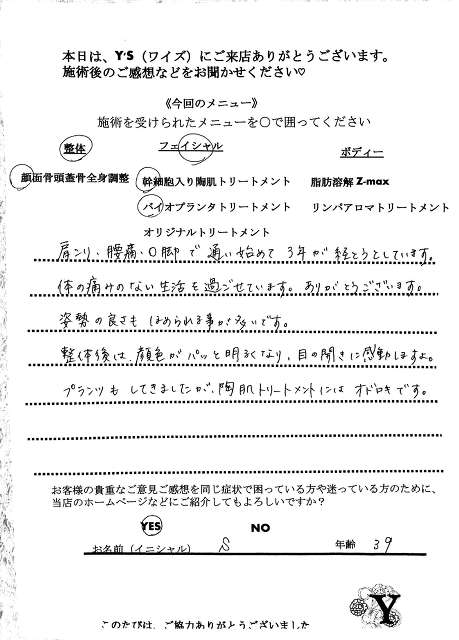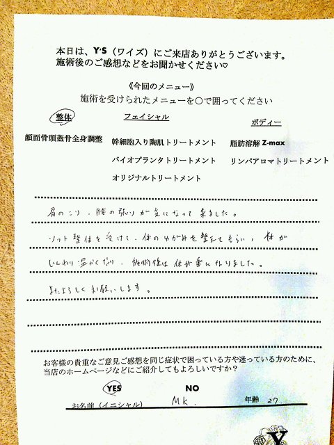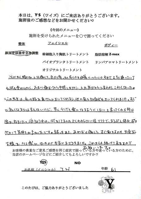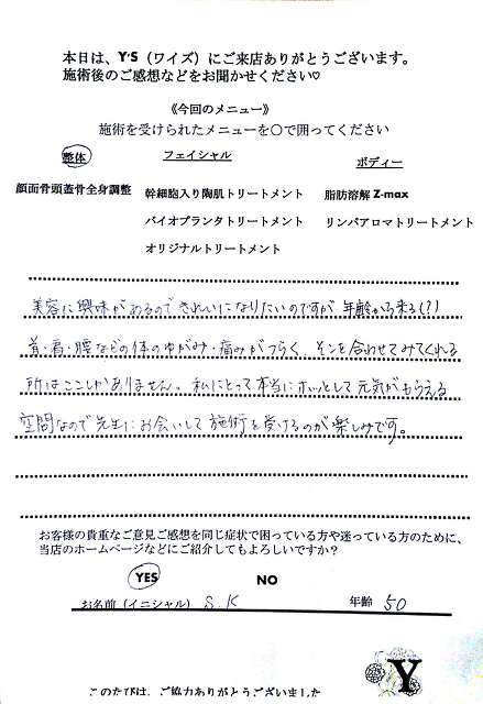 実は、仕事の影響もあってか自分自身の身体も酷い腰痛に悩まされ寝ることも辛く不眠が続き、どこに行っても何をしてもなかなか上手くいきませんでした。ヒョンなことで、現在の整体で驚くほどに自分の身体が酷い痛みやこわばりから解放され、バイオプランツでたるみやシワからも解放されました。