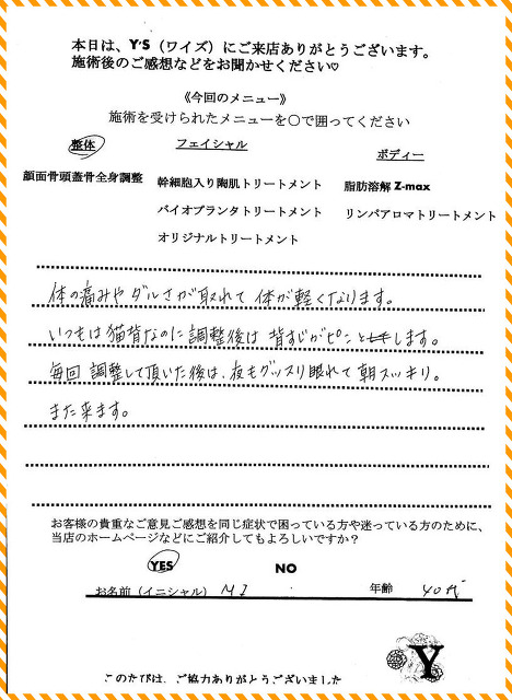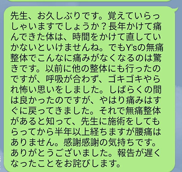 この感動を是非、現在お悩みの方々にも実感していただくために、今でも勉強し技術の追求をし続けている私です。
