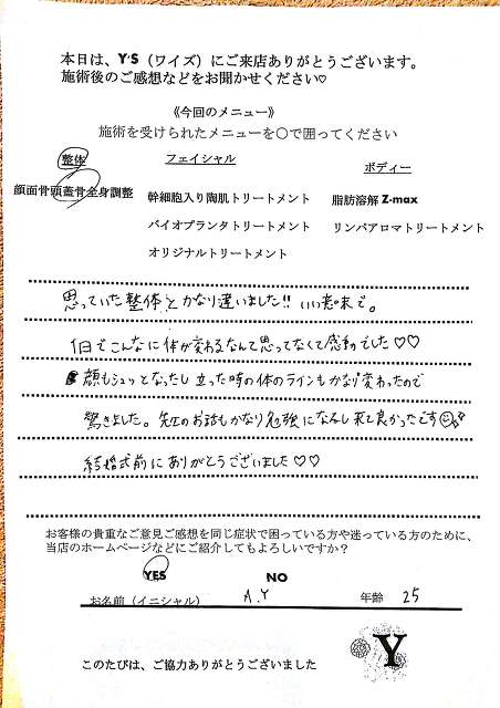 当初はエステ部門だけでしたが、身体のことを追求して勉強するにつれて整体にも深く興味を持ち今に至ります。