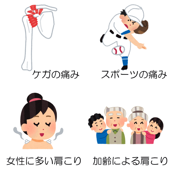 ● 肩のスポーツ障害では、おもに野球肩や水泳肩などがあります。
