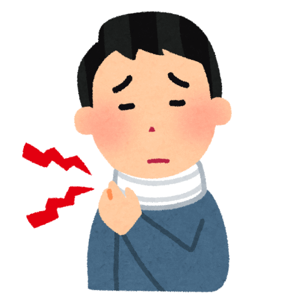 ● 交通事故でもっとも多いのは、「むち打ち症」=首の痛みです。重い頭部をささえる首が、交通事故の衝撃で傷んでしまうのです。