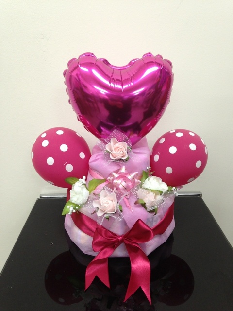オムツケーキ【女の子用(ハート×ドット柄)】