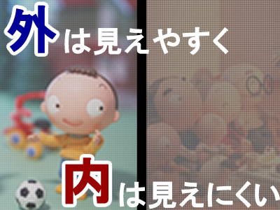 外側からは銀色で見えにくく、内側からは黒くて見えやすいネットです。