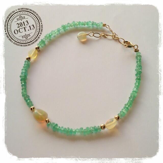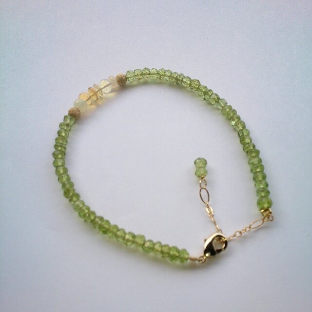 はんなりとした彩りのウォーターオパール、若草色のペリドット。