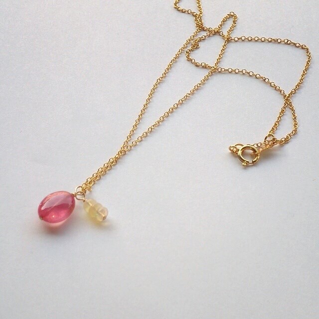 ピンクサファイアと、ウォーターオパールのネックレス。