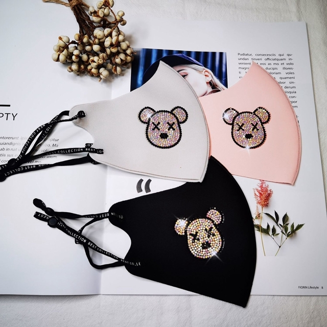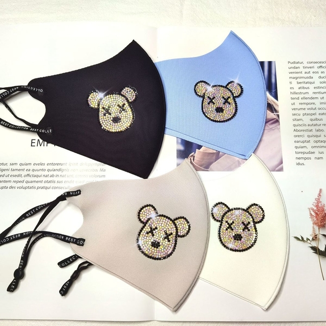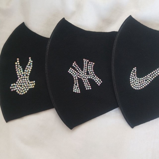 黒グッチ風おしゃれ布マスク 洗える ラインストーン